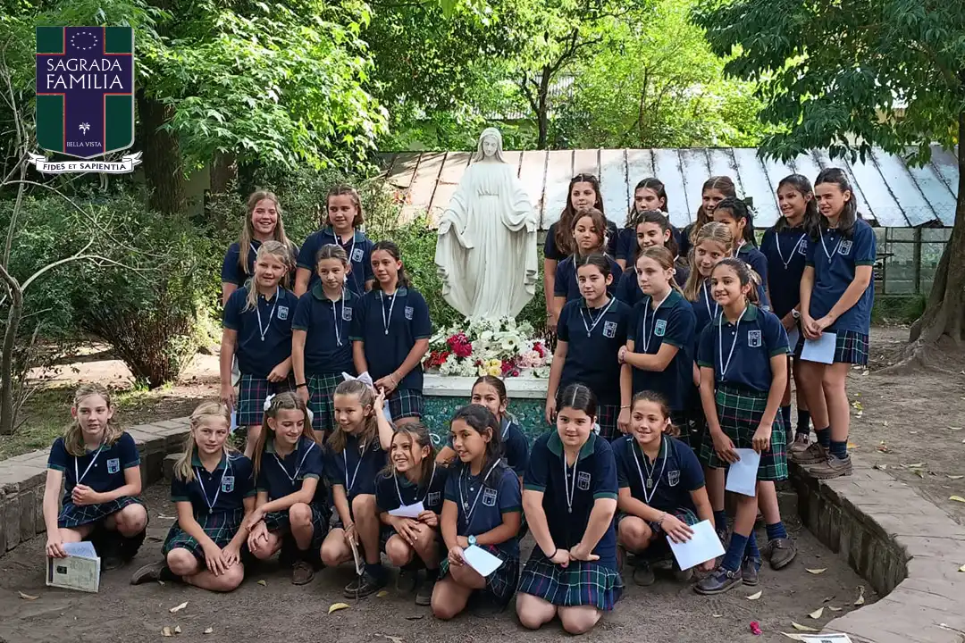 Este 27 de noviembre, en el día de la Virgen de la Medalla Milagrosa, los alumnos de 5to grado se consagraron a nuestra Madre del cielo. Con confianza y alegría se pusieron en manos de la Virgen pidiéndole que sea su guía y protección en el camino que los lleva a Dios. Para ellos, esta consagración es un acontecimiento importante que pretende fomentar la espiritualidad mariana, el sentido de pertenencia y la imitación de las virtudes paradigmáticas de Nuestra Señora (pureza, servicio, humildad). Mediante este paso, se enseña a los estudiantes a buscar protección maternal, vivir en gracia de Dios y confiar en su guía amorosa en una relación personal con María, quien nos lleva a Jesús.